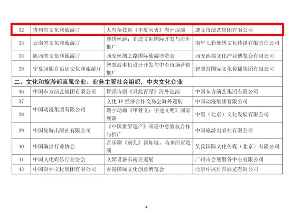 近日,文化和旅游部办公厅公布了2025—2026年“一带一路”文化产业和旅游产业国际合作重点项目的通知。其中,遵义演艺集团大型杂技剧《华夏天香》(又名《大国酒魂》)海外巡演入选2025—2026年“一带一路”文化产业和旅游产业国际合作重点项目。