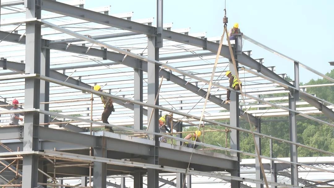 近日,在罗田县经济开发区机械电子产业园,大型机械设备轰鸣运转,施工人员正铆足干劲吊装钢构厂房。总投资5500万元的湖北凯铭环保材料自动化机械设备及环保处理剂制造项目于2024年10月份动工建设,目前已完成投资额2500多万元,完成了1栋综合楼和3栋生产车间的主体工程建设任务,正有序开展车间内的场地平整、管线铺设等工作。湖北凯铭科技材料有限公司总经理 余昊 项目计划建设周期是一年,按照目前的进度,我们有可能提前竣工。投产后年产值不低于5000万元,纳税的金额预计突破150万元。